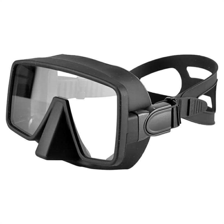 Dykmask med helt glas för maximalt synfält. Liten luftvolym.